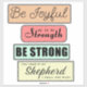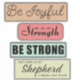 Quatre autocollants inspirants en un. Sois Joyeux, Il est ma Force, Sois Fort, Le Seigneur est mon berger, je ne veux pas.