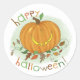 Les enfants de tous âges apprécieront cette illustration fantaisiste d'un citrouille d'Halloween souriant, qui dit "Happy Halloween" sur la police d'un enfant.