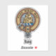 Clan Haig crest badge surrounded by a strap and buckle over check tartan background. Custom text.