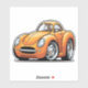 A retro-inspired cartoon car in vibrant orange, featuring curvy body lines, oversized chrome wheels, and bold outlines. A playful vintage-style vehicle design for fans of stylized automotive art.