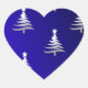 Sticker Cœur Arbres de Noël Argent sur Bleu Cobalt