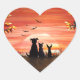 Sticker Cœur Automne Sunset Chien et Chat Automne