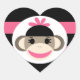 Sticker Cœur Bébé mignon fille Sock Singe noir rose rayures