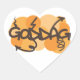 Bonjour écrit en danois - Goddag. Dans une police de style graffiti simple avec des éléments décoratifs comme des flèches. Le fond est fait de cercles jaunes et oranges.
