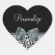 Personnalisez en ajoutant le nom de n'importe quelle fille à ces autocollants empreintes de léopard noirs et blancs sophistiqués en forme de coeur avec un ruban élégant attaché à un arc féminin élégant. Ce design poster de animal élégant est une image à impression plat, et ne contient pas de ruban réel.