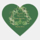 Créez un autocollant unique pour la fête de mariage. Un autocollant de trèfle à 4 feuilles vert et or chanceux pour l'occasion LUCKY de la Saint-Patrick pour l'arrivée du petit trèfle. Le design botanique vert présente des trèfles en forme de cœur sur la bordure. Le TEXTE est facilement personnalisable avec vos mots.