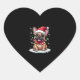 Sticker Cœur Chiens de Noël Français Drôle Lumières de chapeau