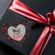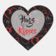 Design autocollant personnalisé en forme de coeur avec coeur de gribouillis rouge et blanc et motif de script d'amour sur un arrière - plan noir avec un coeur gris transparent avec le texte HUGS AND KISSES. Le texte est entièrement personnalisable.