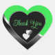 Sticker Cœur Coeurs noirs verts mignons et Merci argenté ondulé