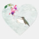 Des colibris à gorge rubis se rassemblent le long de la côte du Golfe pendant les mois d'août et de septembre, préparant leur migration annuelle vers leur maison d'hiver au Mexique. Tout en se préparant à chercher des fleurs remplies de nectar de plantes comme la fuschie et la vigne de trompette pour les alimenter dans leur voyage. Cette conception présente une femelle rubis-gorge qui s'approche d'une tentante fleur de fuschie rose et violet.