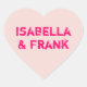 Autocollant personnalisable en forme de coeur de conversation rose pastel. Modifiez la taille du texte pour qu'il corresponde aux noms d'un couple et créez un message personnalisé pour la Saint-Valentin. Créez votre propre autocollant de coeur de conversation.
