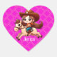 Sticker Cœur Cute Cowgirl et Cheval Western Rose