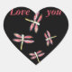 Sticker Cœur Dancing Pink Dragonfly Bugs