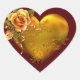 Beau autocollant de coeur avec coeur doré et décoration fleurie rose jaune, parfait pour orner les pages du livre à gratte-ciel ou utilisé comme sceau d'enveloppe.
