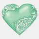 Beau autocollant de coeur avec rouleau argenté blanc fleuri sur un coeur vert jade, parfait pour orner les pages du carnet ou utilisé comme sceau d'enveloppe.