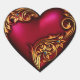 Beau autocollant de coeur avec parchemin doré fleuri sur un coeur rouge, parfait pour orner des pages de cahier ou utilisé comme sceau d'enveloppe.