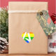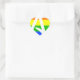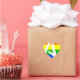 C'est un drapeau arc-en-ciel avec un symbole athée blanc au centre.
