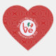 Un autocollant en forme de cœur représente le DRAPEAU LOVE mexicain. Le mot LOVE est écrit en lettres rouges à l'intérieur d'un cercle fractal blanc composé de carrés ondulés. Le cercle est posé sur un fond fractal rouge, également composé de carrés ondulés. Idéal pour vos invités lors de votre prochaine occasion ou fête pour célébrer le Mexique. Peut être personnalisé pour le Cinco de Mayo ou toute autre occasion.