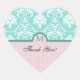 Sticker Cœur Elégant Aqua Merci bleu et rose Damas