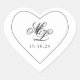 Sticker Cœur Élégant Monogramme noir et blanc Script