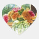 Joli bouquet de fleurs en rouge, orange et jaune disposé dans un vase de cristal assis sur une table près de la fenêtre. Une scène boisée de rêve à travers la fenêtre est le décor de cette image relaxante. D'une aquarelle originale de l'artiste Katherine Foltuz.