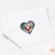A luminous heart-shaped object glows at the center, surrounded by vibrant cosmic swirls. Small spherical orbs add depth to the celestial scene.