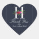 Sticker Cœur H Monogramme Dernière Initiale Moderne Fleurs Bleu