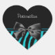 Sticker Cœur Impression Zèbre Noir Et Turquoise Avec Ruban
