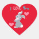 Sticker Cœur J'aime Lapin Rouge Rose Coeur Mignon Cool