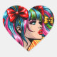 Sticker Cœur Jolie Pop Art Comic Girl with Bows