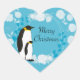 Sticker Cœur joyeux noël, noël,pingouin,fleurs,bleu,