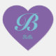 Sticker Cœur Lettre cursive B bleu violet calligraphie Monogram