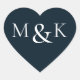 Navy & White Modern Elegant Nom Mariage initial Engagement Sticker Coeur Voir la collection correspondante dans notre magasin