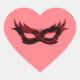 Un masque de masquerade mignon, cet autocollant en forme de cœur présente un design rouge et noir. Choisissez parmi une variété de formes différentes. Idéal pour les sacs de faveur pour les enterrements de vie de jeune fille, les anniversaires, etc.