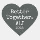 Célébrez votre amour dans un style intemporel avec cet autocollant de mariage au coeur non noir avec l'expression "Mieux Ensemble" personnalisée avec vos initiales et l'année mariage. Parfait pour sceller des enveloppes, des faveurs de mariage ou des cartes de remerciement, ce design minimaliste moderne vient compléter les thèmes mariages classiques, élégants et contemporains.