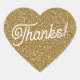 Cet autocollant cadeau en forme de coeur présente une parties scintillant dorée brillante et "Merci!" en écriture script.
