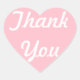 Un "merci" en gros caractères blancs contre une forme de coeur rose.