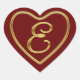 Monogramme E en or 3D avec bordure d'or sur un autocollant de coeur fait un autocollant personnel et scellé d'enveloppe. La couleur arrière - plan peut être modifiée.