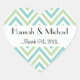 Sticker Cœur Motif Zigzag, Chevron, Bleu, Vert, Mariage