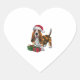 Sticker Cœur Noël Éclairage Santa Hat Basset Hound Chien Noël