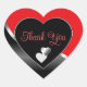 Sticker Cœur Noir rouge vif et Coeurs Merci argenté ondulé