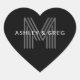 Sticker Cœur Nom rétro moderne / monogramme éditable noir et gr