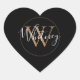 Sticker Cœur Nom simple du monogramme de script noir et or
