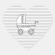 Sticker Cœur Pram bébé blanc et gris.