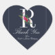 Sticker Cœur R Monogramme Dernière Initiale Moderne Fleurs Bleu