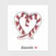 Des sucres de canne rayés rouges et blancs sont disposés en forme de coeur. Couleurs vives et design ludique de bonbons pour la saison de Noël festive.