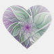 Sticker Cœur Rêve de Fleur, Art Fractal Abstrait Violet Vert