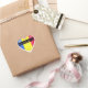 Découpe du coeur du drapeau de la Roumanie avec superposition du texte étiquette