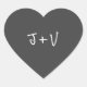 Une simple police de style manuscrite blanche avec ses initiales et ses initiales sur un autocollant d'enveloppe en forme de coeur gris pour coordonner avec votre photo instantanée Vintage Enregistrer les cartes de date.