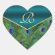 Sticker Cœur Sceau d'enveloppe de monogramme de paon turquoise
